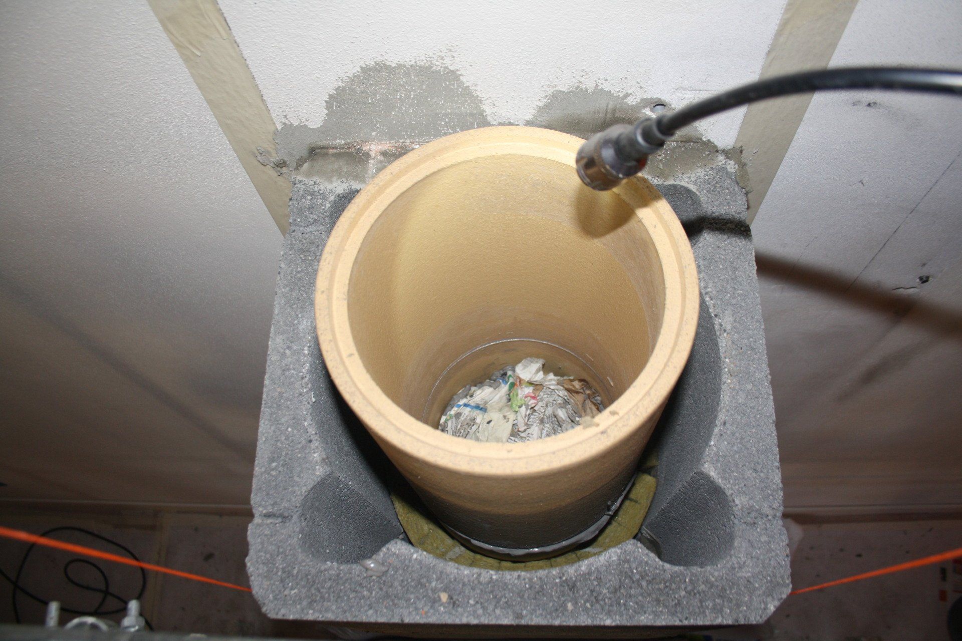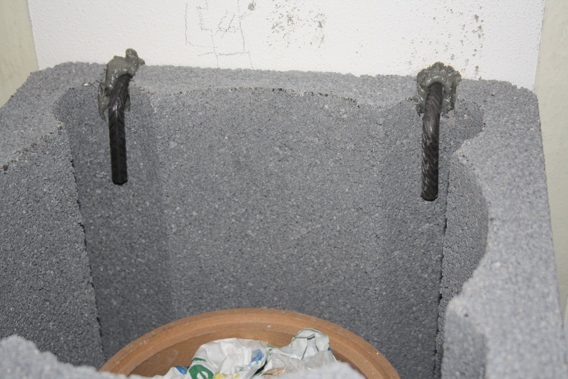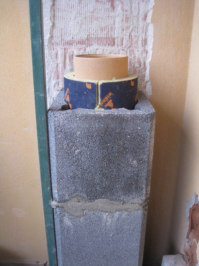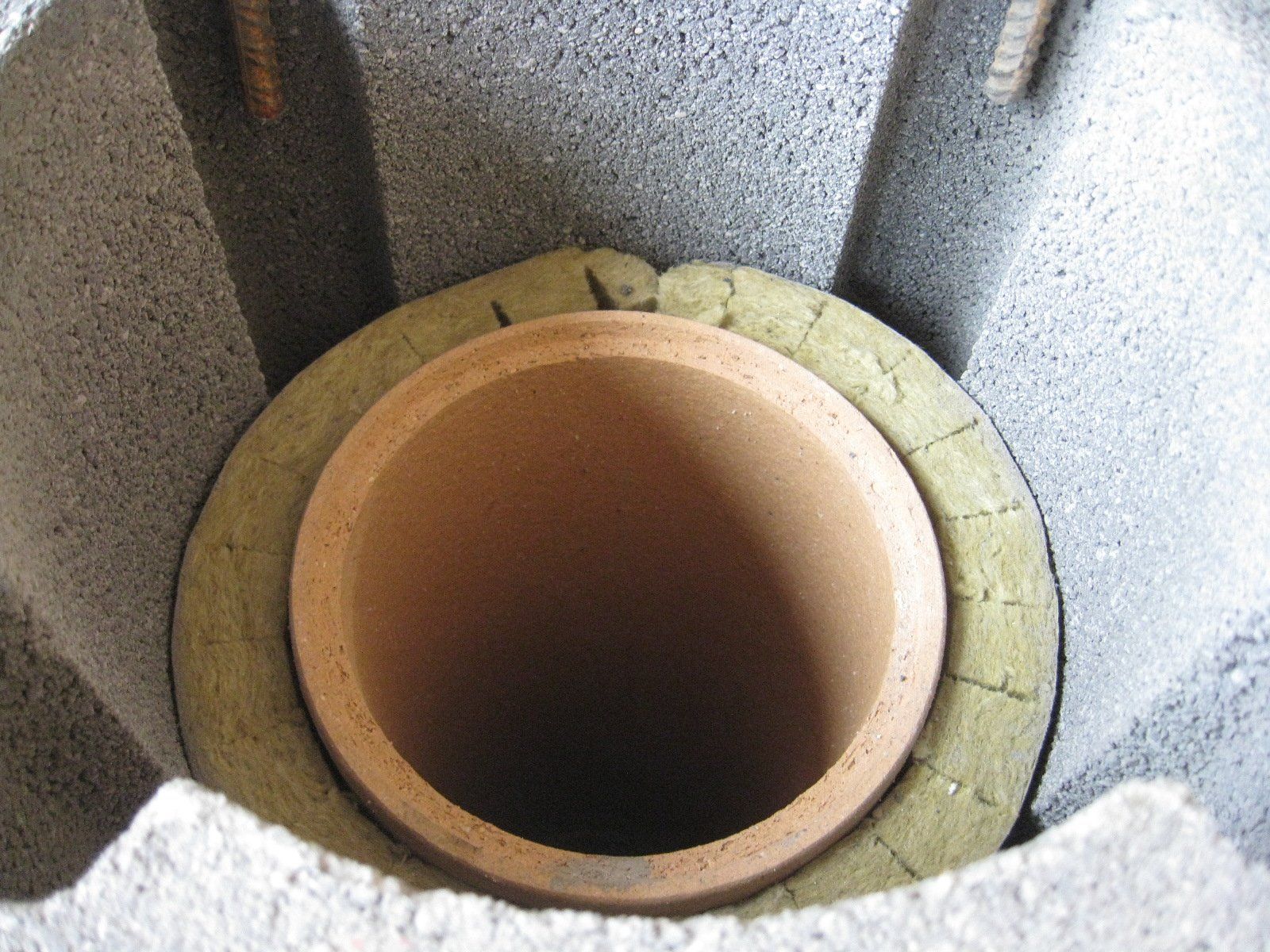 Particolare cavedio in CLS con isolante e condotto in refrattario sfalsato