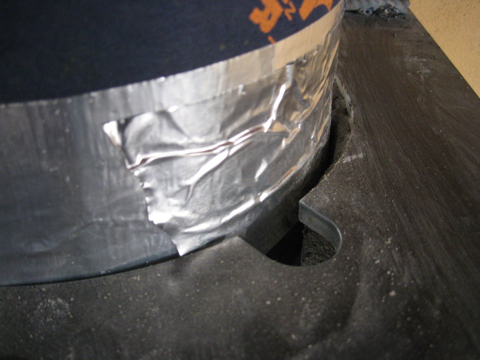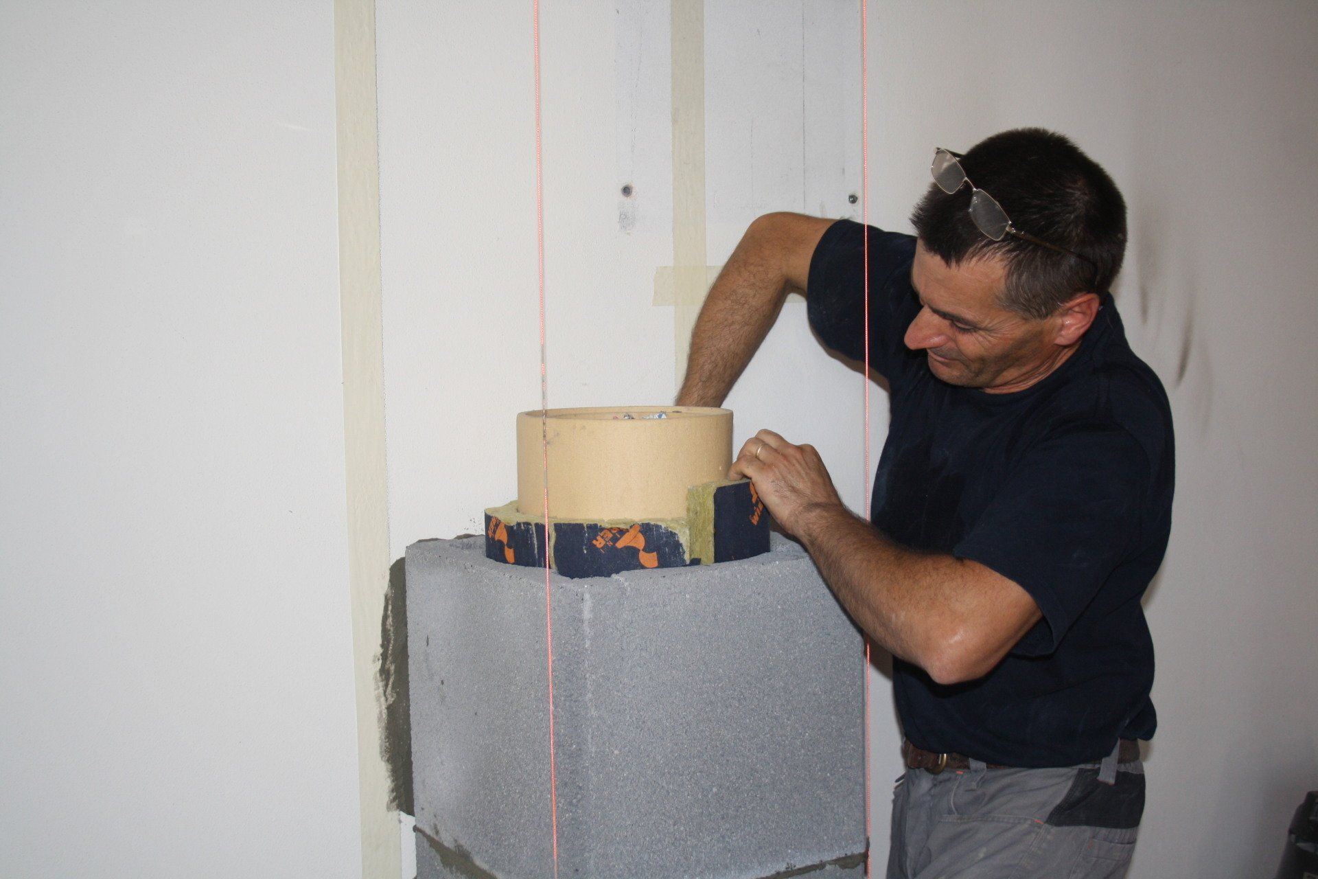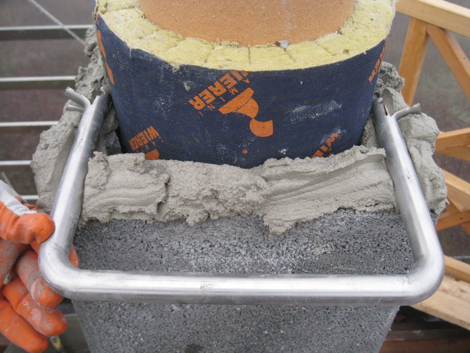 Particolare cavedio in CLS con isolante e condotto in refrattario sfalsato