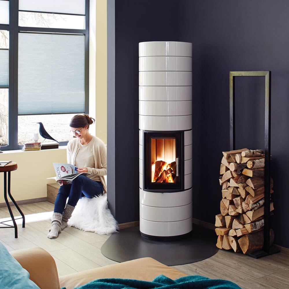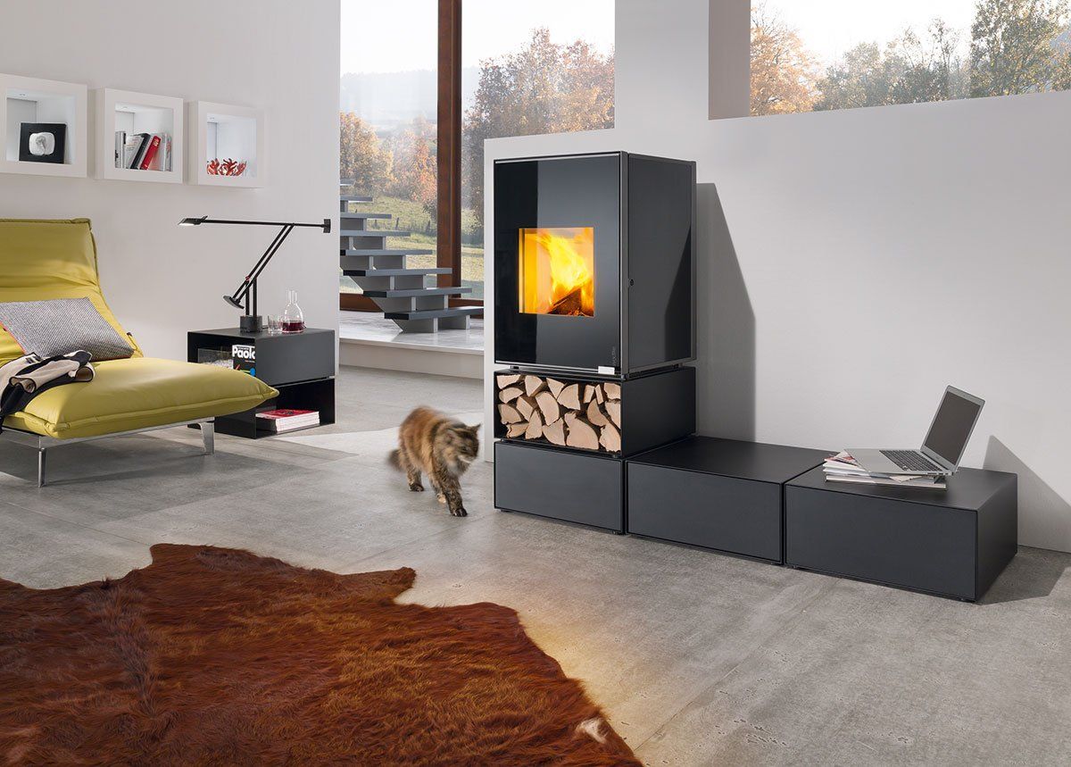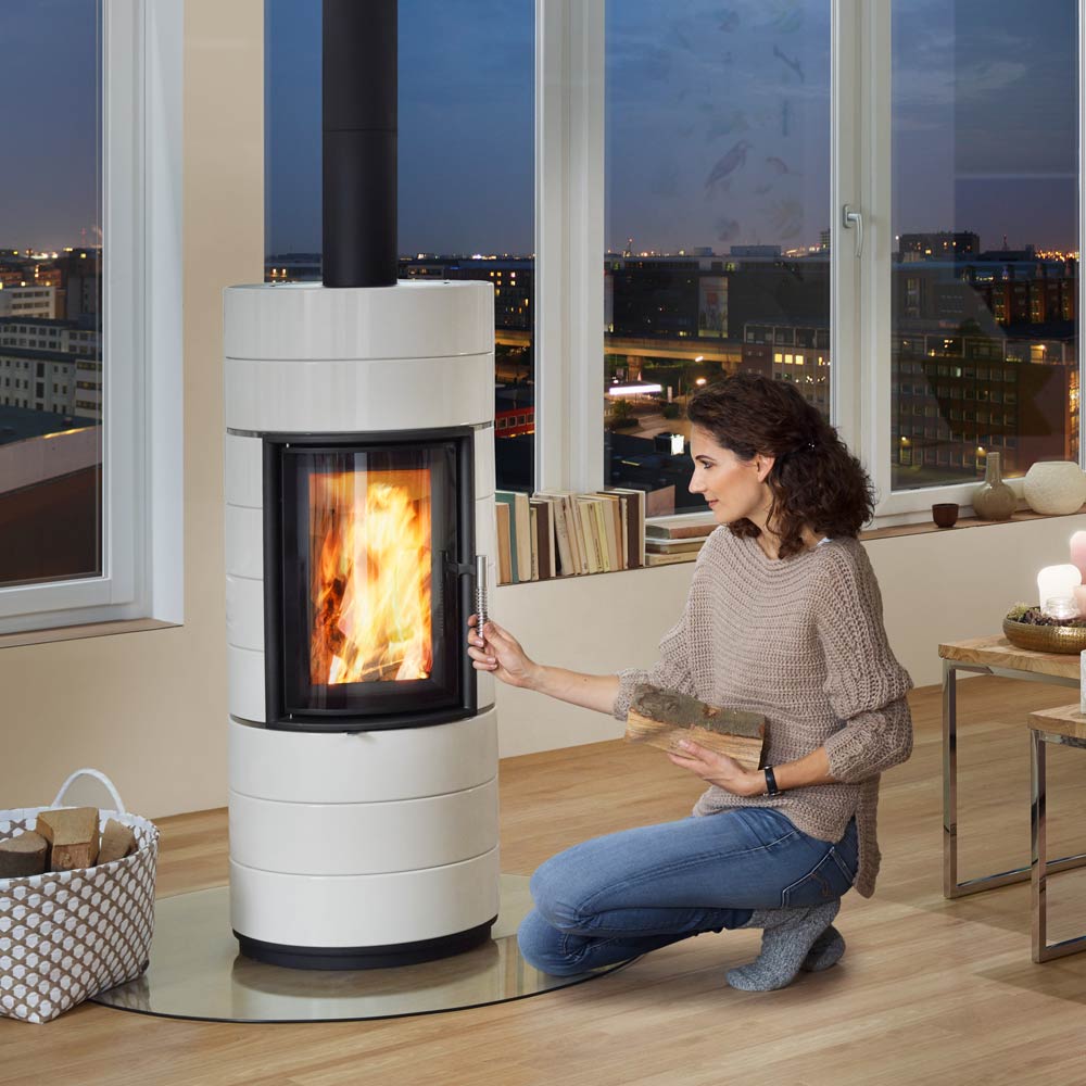 Una recente innovazione per la stufa è il modulo di memoria di accumulo di calore Wodtke. Un blocco di stoccaggio assorbe il calore della camera di combustione e lo riporta lentamente nella stanza sotto forma di calore radiante. In questo modo, la stufa ti assicura di poter godere del fuoco e del calore per molte ore.